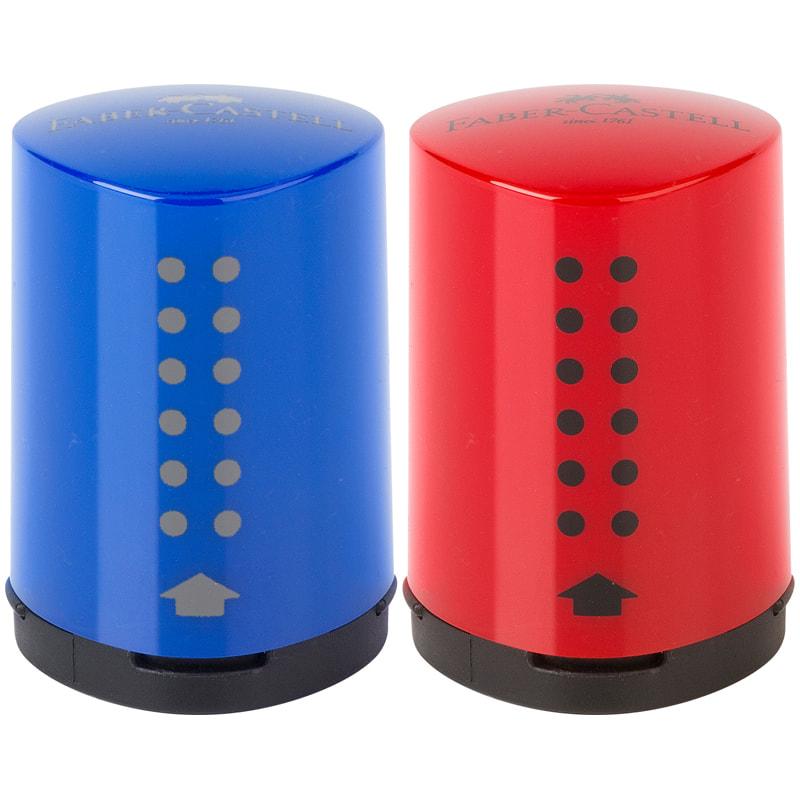 Точилка пластиковая Faber-Castell "Grip 2001 Mini", 1 отверстие, контейнер, красная/синяя. 183710