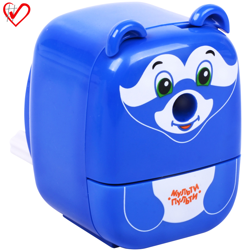 Оригинальная механическая точилка в форме енота. С одним отверстием для заточки карандашей. Лезвие из высококачественной стали. Упаковка в индивидуальные прозрачные ПВХ-коробки. Для детей старше 3-х лет.