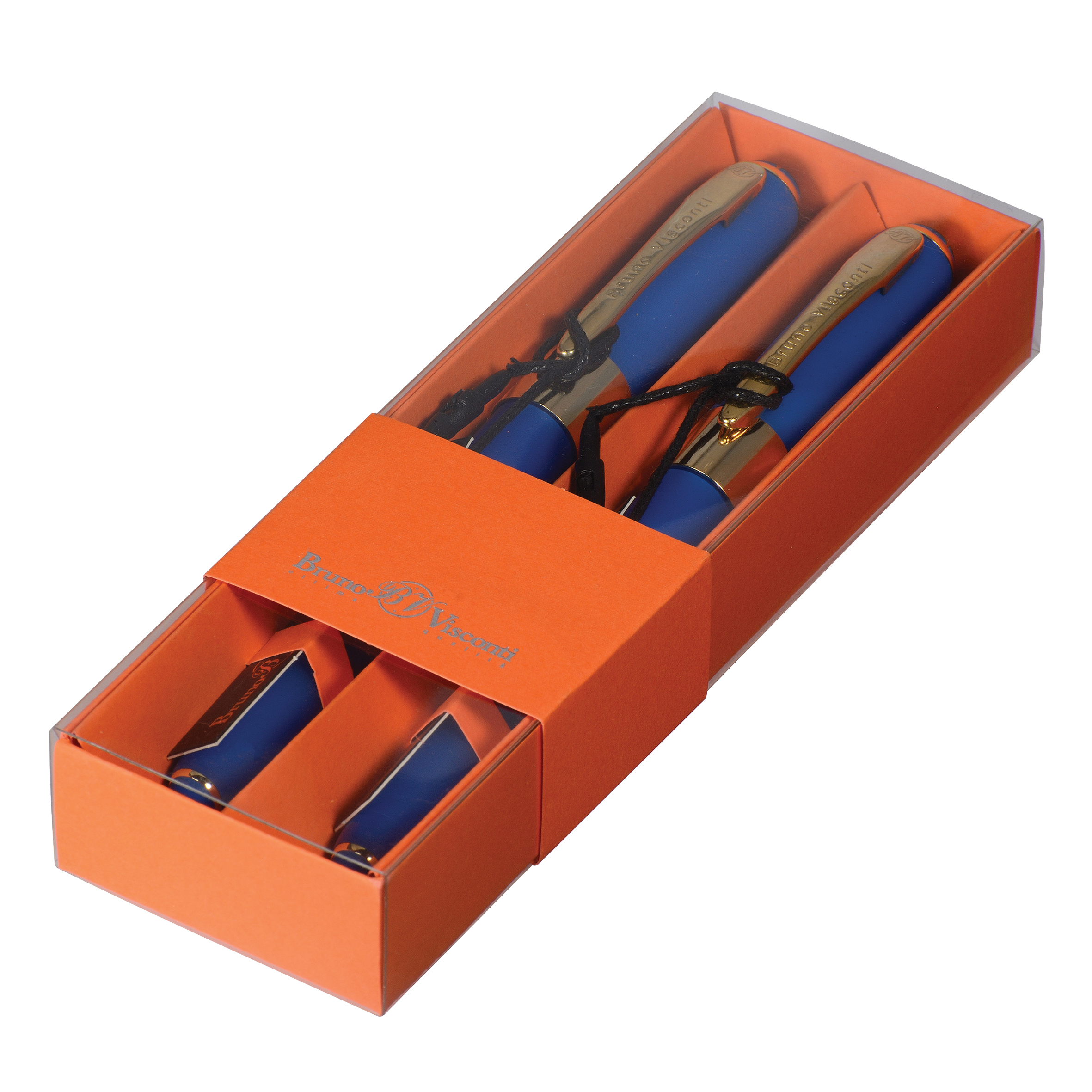НАБОР ИЗ 2-Х РУЧЕК В ФУТЛЯРЕ "MONACO" ШАРИКОВЫХ 0.5 ММ, СИНЯЯ (ярко-синий корпус,оранжевая коробка)