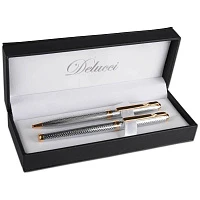 Набор Delucci "Mistico": ручка шариковая 1,0мм и ручка-роллер 0,6мм, синие, оруж. металл, подар.уп.. CPn_11423